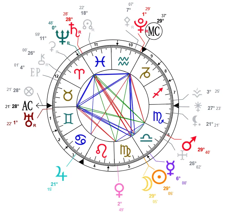 ✧ Opposition Soleil/Lune en Vierge et Saturne en Poissons : une tension se crée entre notre volonté d’avancer concrètement et les limites (réelles ou intérieures) qui se dressent. Cela peut se traduire par un sentiment de blocage ou de frustration, mais c’est aussi une invitation à développer patience, persévérance et discipline.